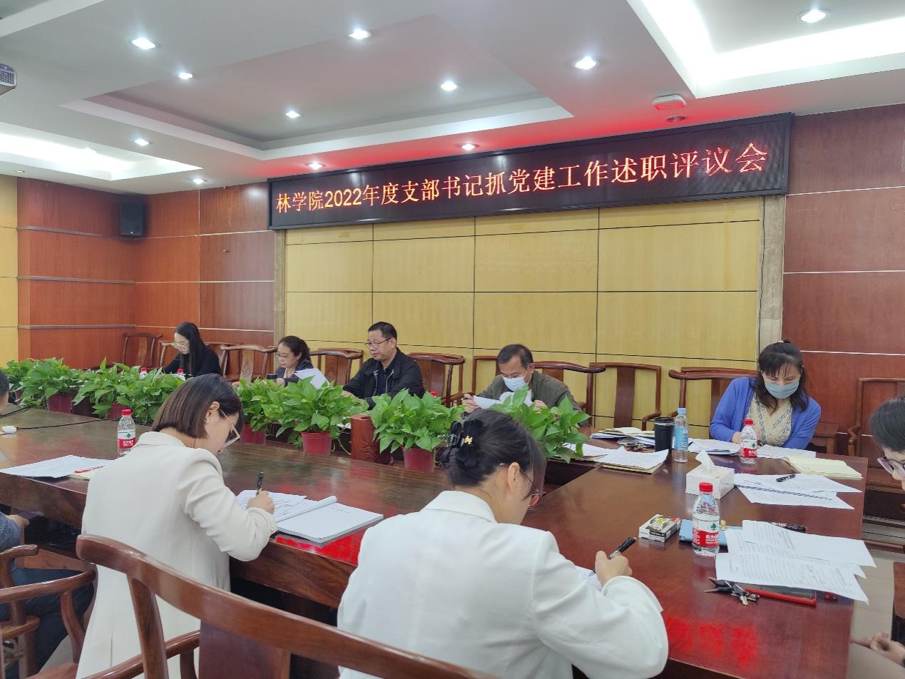 院党委书记覃宪儒、党委副书记徐丽在听取各党支部的述职后,分别对各党支部工作进行了点评。会上,覃宪儒书记充分肯定了各支部书记2022年度党建工作取得的成绩,并着重表扬了园林研究生党支部在党员教育管理和社会实践工作方面的先锋模范带头作用。覃书记指出,2022年各党支部认真落实了支部工作职责开展了有声有色的党建活动,成果丰硕、成效明显,学院党委对此表示感谢。但在破解党建业务“两张皮”方面亟待提升,希望各支部以党建工作为引领,引导青年教师主动参与教学竞赛、优质本科生课程倍增计划项目,加强服务意识,强化制度约束,创新活动教育形式,推进“一支部一品牌”百花齐放。