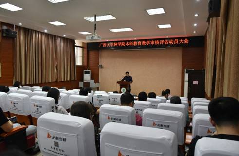 4月18日下午,我院在112报告厅召开本科教育教学审核评估动员大会,会议对迎评工作进行具体部署,进一步统一思想、凝聚共识、提高站位、形成合力,共同推进本科教育教学审核评估工作圆满完成。党委书记覃宪儒主持会议,常务副院长叶绍明、教学副院长符韵林讲话,全体教职工参加会议。