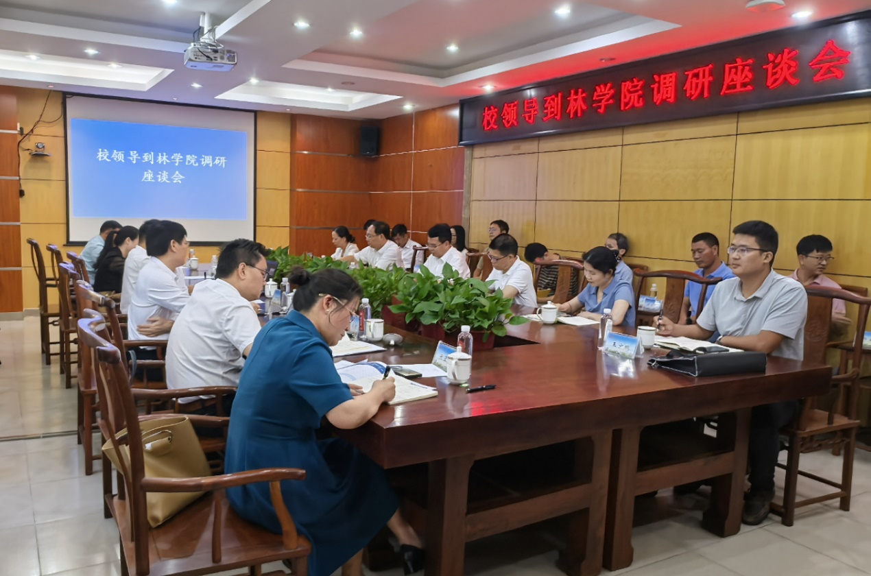 李国忠书记对学院近年来工作取得的成效表示肯定,并就学院的未来发展提出极具针对性的意见建议。他强调,一是要强化党建引领,坚持用党的创新理论凝心铸魂,把党的二十届三中全会、全国教育大会的重要精神与学院的发展结合起来,凝聚发展共识;二是要抓住主要矛盾,正视发展中的短板与不足,明确学科发展方向,重点支持林学博士点的申报,实现资源的优化配置与高效利用,汇聚奋进力量;三是要加强人才引培,确保人才队伍建设与学院长期规划及学科发展的需求高度契合;四是要追求开放合作,积极推动校地、校企的产学研合作,引导师生把论文写在八桂大地上。