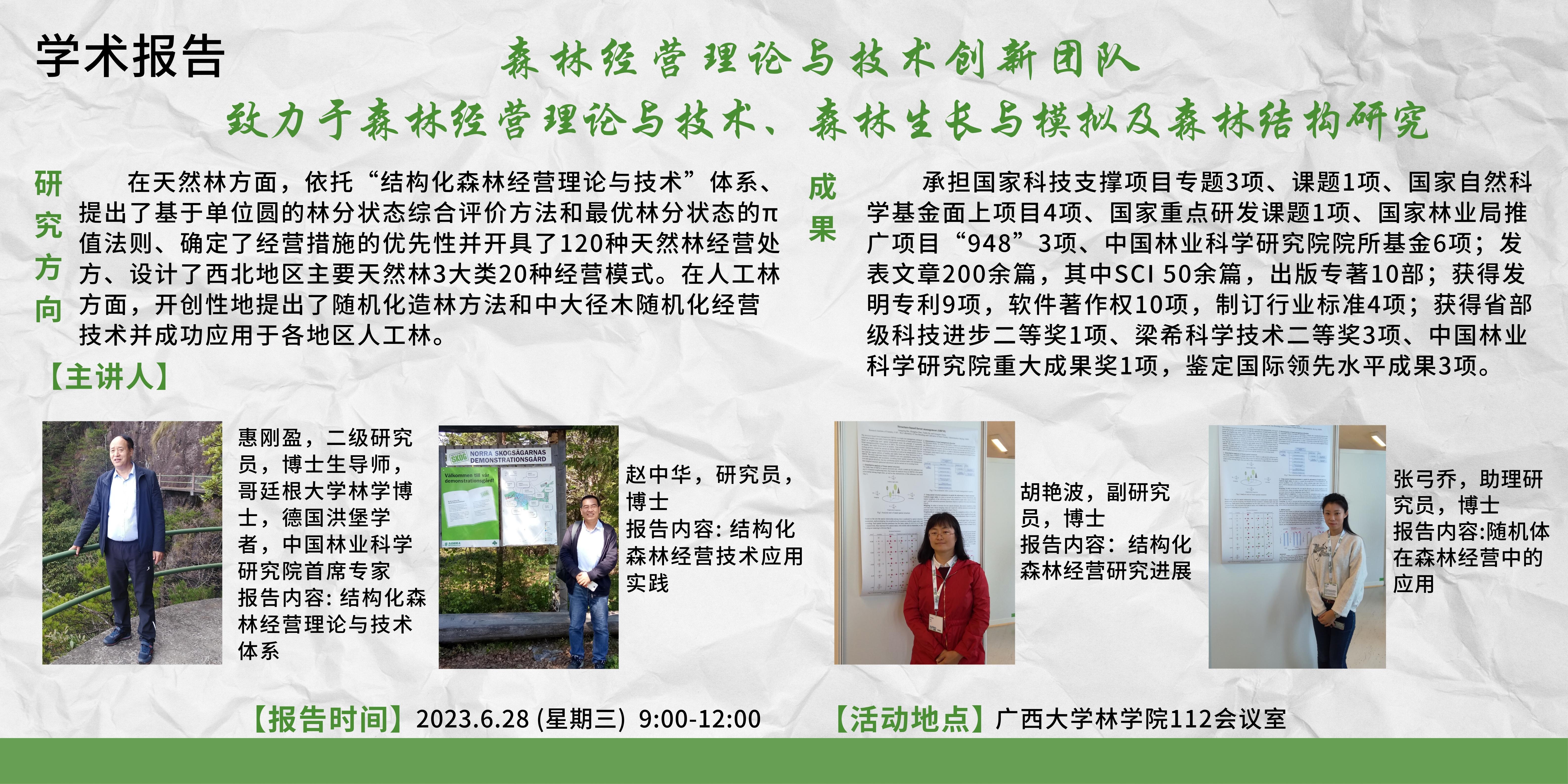 学术报告:森林经营理论与技术创新团队系列报告