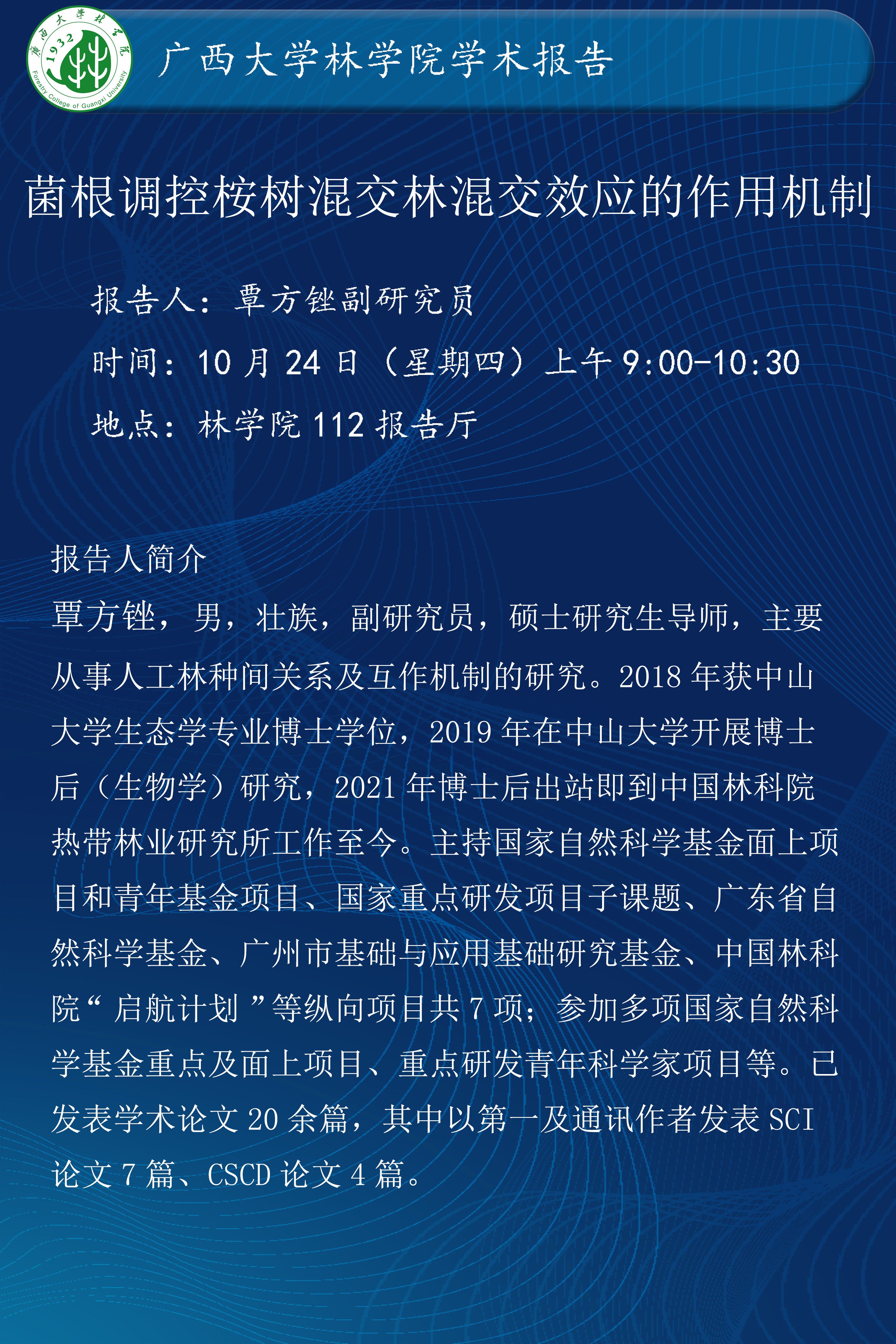 学术报告:菌根调控桉树混交林混交效应的作用机制