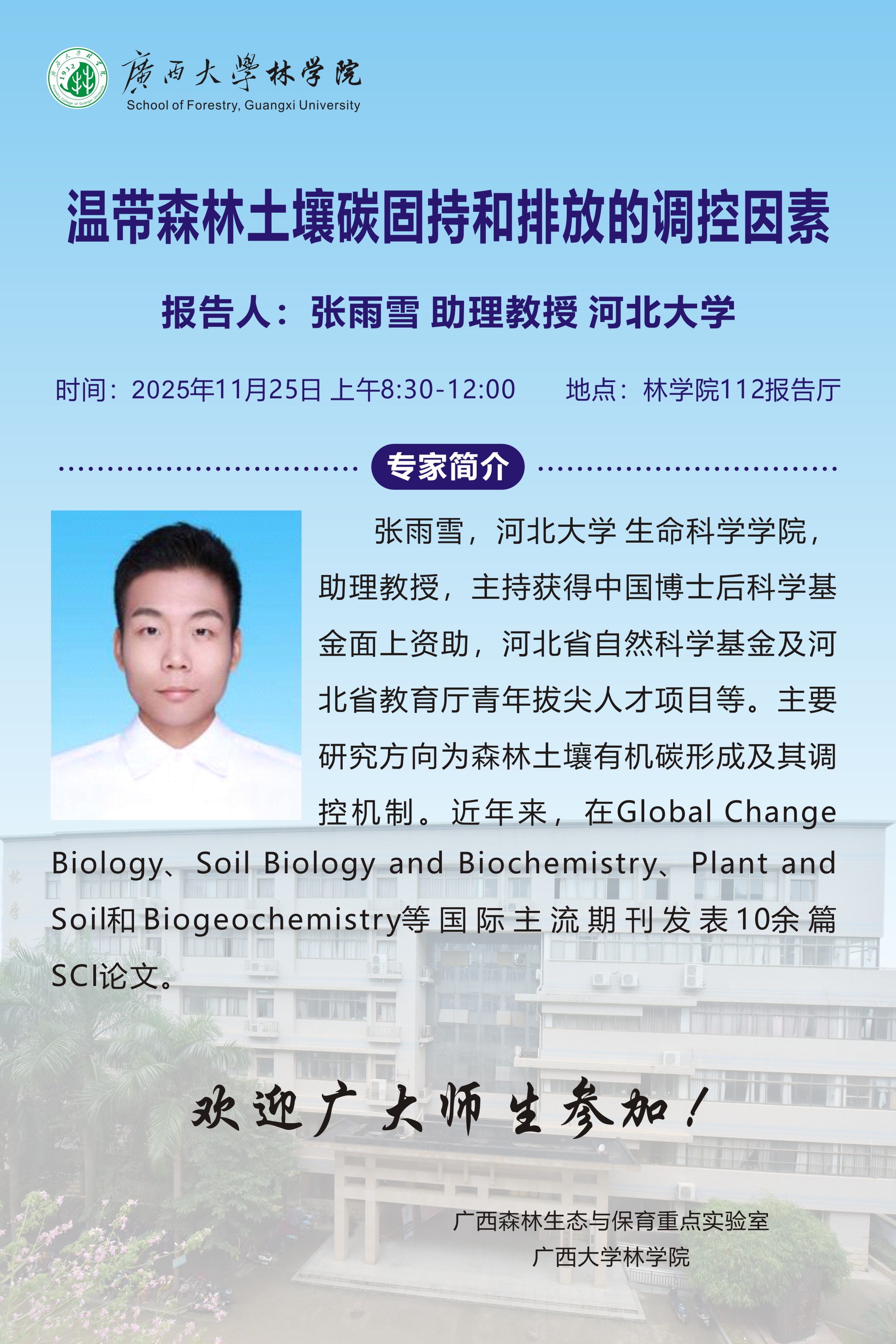 学术报告:温带森林土壤碳固持和排放的调控因素