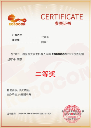 学生作品获全国大学生机器人大赛二等奖