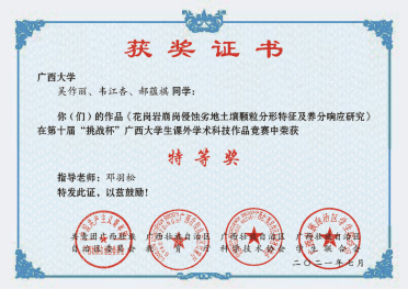学生作品广西“挑战杯”大赛特等奖