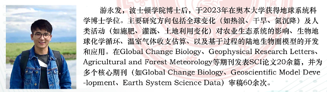 2024年6月13日,美国波士顿学院游永发博士后受邀开展现代农林信息技术专题讲座。本次报告以“Dynamics of Crop Production and Greenhouse Gas Balance in a Changing Environment: Data-Driven Systems Approach for Sustainable Agriculture in the United States”为题,以线上和线下同时进行的方式开展,学院相关教师、研究生共计30余人参会,苏凯老师为邀请联系人、报告主持人。