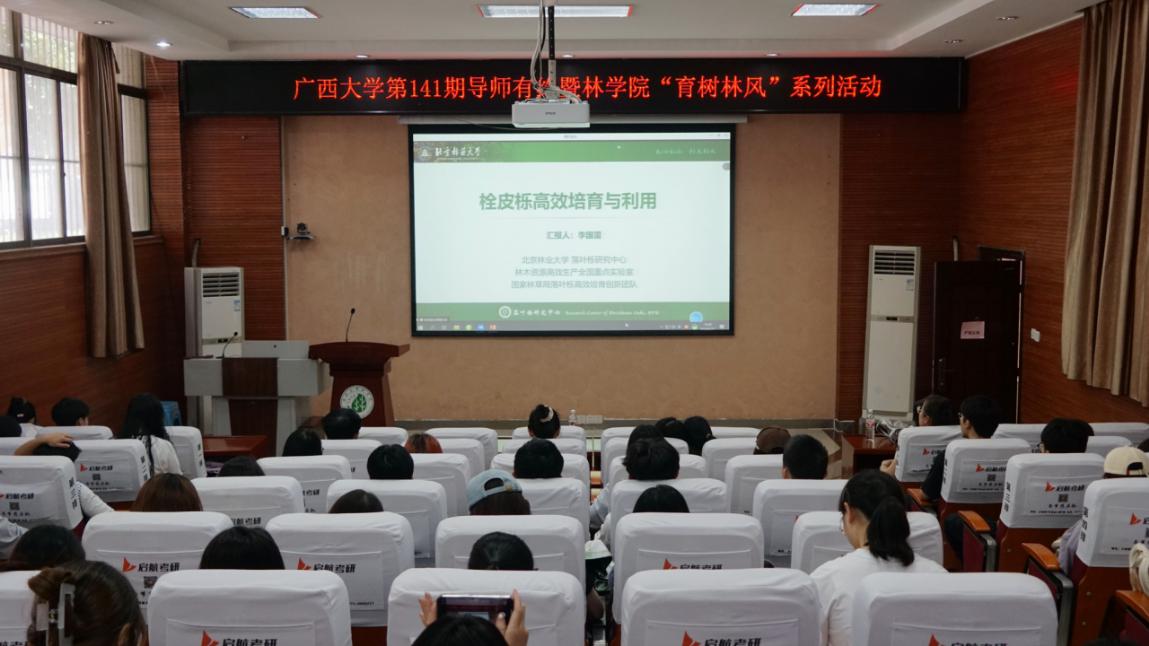 6月27日上午,第141期导师有约暨“育树林风”系列活动在我院112报告厅举行。本次活动通过云端连线的方式邀请到了森林培育学科的杰出教授李国雷作为主讲嘉宾,李老师以栓皮栎高效培育研究进展为主题,与我院100多名研究生共同探讨栓皮栎培育领域的最新动态与未来发展方向。会议由我院副院长杨梅教授、研究生熊丽娜主持。
