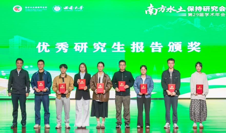 在学生分会场学术交流会上,黄钰涵副教授指导的2023级硕士生黄子轩就“初始含水率影响下红壤大团聚体的溅蚀特征研究”论文进行了学术报告,与参会人员开展了深入交流与讨论,并在报告评比中获得“优秀报告奖”,同时该论文获南方水土保持学会“优秀会议论文二等奖”。