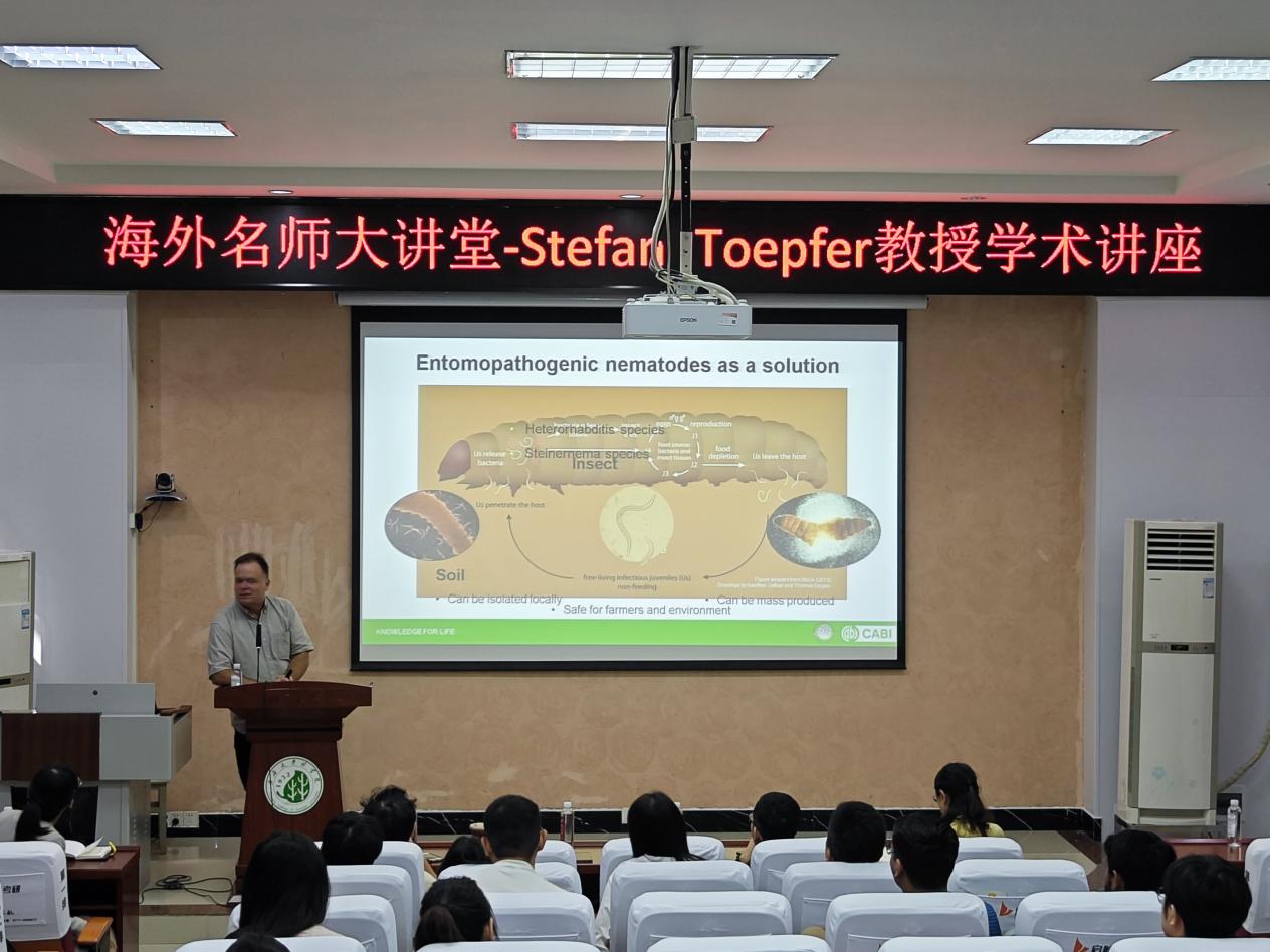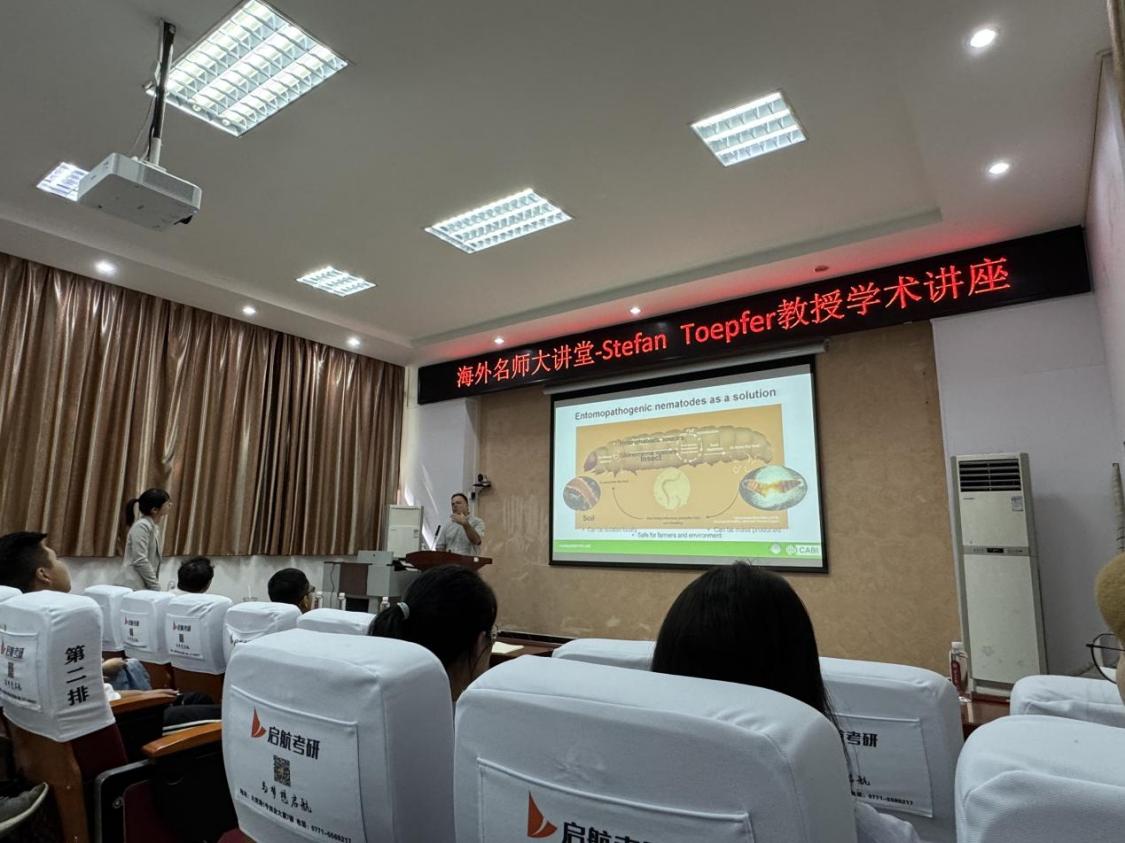 2024年10月25日上午,来自CABI(Commonwealth Agricultural Bureaux International)瑞士-匈牙利中心的世界著名植物保护专家Stefan Toepfer教授受邀做客“伟德betvlctor1946源于英国海外名师大讲堂”,作“昆虫病原线虫对抗入侵性害虫的配方与应用技术”(Formulation and application techniques of entomopathogenic nematodes against invasive insect pests)学术报告。本次报告会在伟德国际VICTOR1946112会议室举行,伟德国际VICTOR1946院长助理、森林保护领域青年学者胡平副教授主持报告会,农学院吴海燕教授及其团队成员、农学院植保学科的部分研究生、伟德国际VICTOR1946研究生及森保团队师生100余人参加会议。
