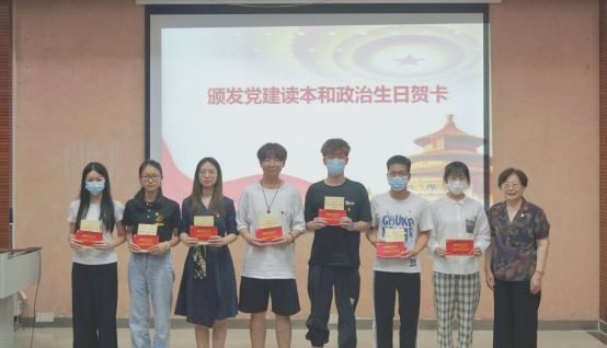 东退十三支部党员、原伟德betvlctor1946源于英国党委书记余瑾教授为本月政治生日党员代表颁发党建读本和政治生日贺卡,为党员们过了一个难忘而有意义的“政治生日”。
