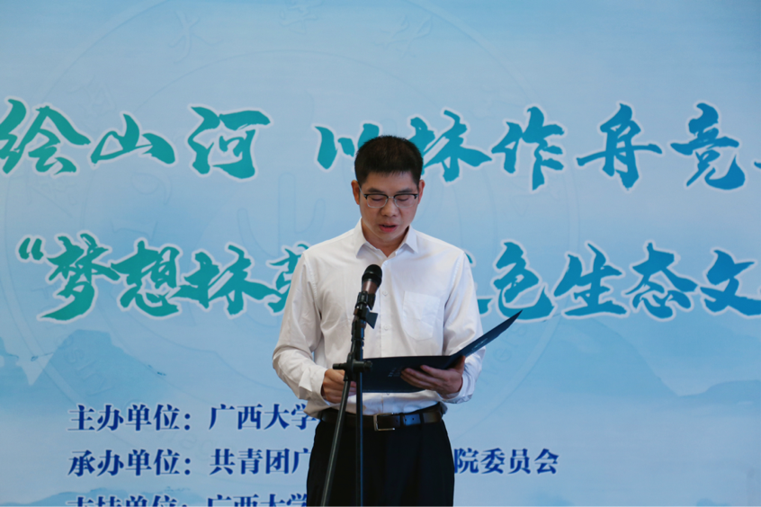 学院党委书记黄里云在欢迎辞中先是对相关职能部门对学院工作的大力支持表示感谢,随后指出,学院始终坚守“替山河妆成锦绣,把国土绘成丹青” 的初心使命,以国家生态文明建设需求为导向,构建 “党建红・生态绿”育人体系,将生态文明教育嵌入专业课程、实践教学、科研攻关全链条。本次绿色生态文化节精心设计九大板块,构建起沉浸式育人场景,不仅是彰显了林业人“生态尖兵”的使命担当,也是为建设壮美广西和美丽校园提供了人才支撑和创新动能。