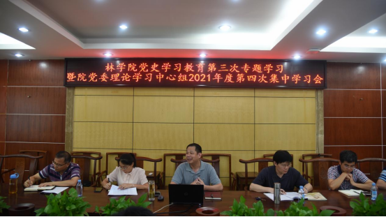 5月28日下午,伟德国际VICTOR1946召开党史学习教育第三次专题学习暨党委理论学习中心组2021年度第四次集中学习会,专题学习了改革开放新时期中国共产党的历史。院党委理论学习中心组全体成员、学院纪委委员和各党支部书记参加会议,院党委书记覃宪儒主持会议。
