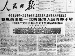 1957年4月27日,中共中央号召开展整风运动,并发布《关于整风运动的指示》。5月1日,该指示在《人民日报》上公开发表。标志着“反官僚主义、反宗派主义和反主观主义”整风运动的开始。1958年8月底,整风运动结束。