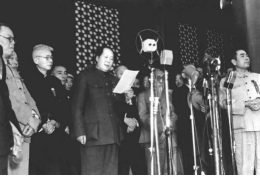 1949年10月1日,毛泽东主席在天安门城楼上庄严向世界宣告:“中华人民共和国中央人民政府今天成立了。”从此,中华人民共和国诞生了!中国人民从此站起来了!新中国的成立,壮大了世界和平、民主和社会主义的力量,鼓舞了世界被压迫民族和被压迫人民争取解放的斗争。