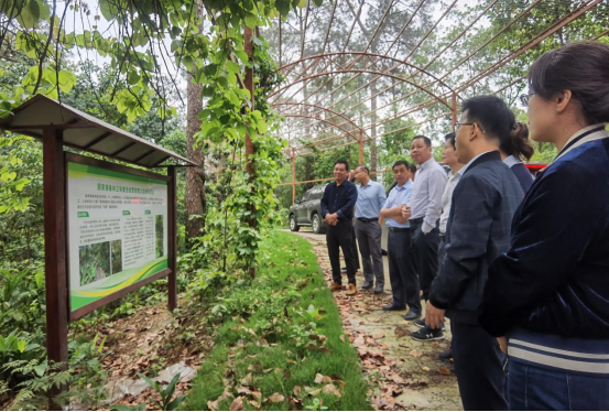 调研组深入国有七坡林场吴圩场部,先后调研了广西东盟(南宁)林业科技示范园区、七坡林场国家储备林基地建设项目桉树纯林改培示范点和桉树大径材培育示范点、七彩七坡林下经济产业示范区,双方就本科教育教学审核评估工作、院毕业生发展情况以及项目拓展、校企共建、资源整合等方面进行了深入交流,并就如何搞好主题教育,一体推进产学研深度融合交换了意见。