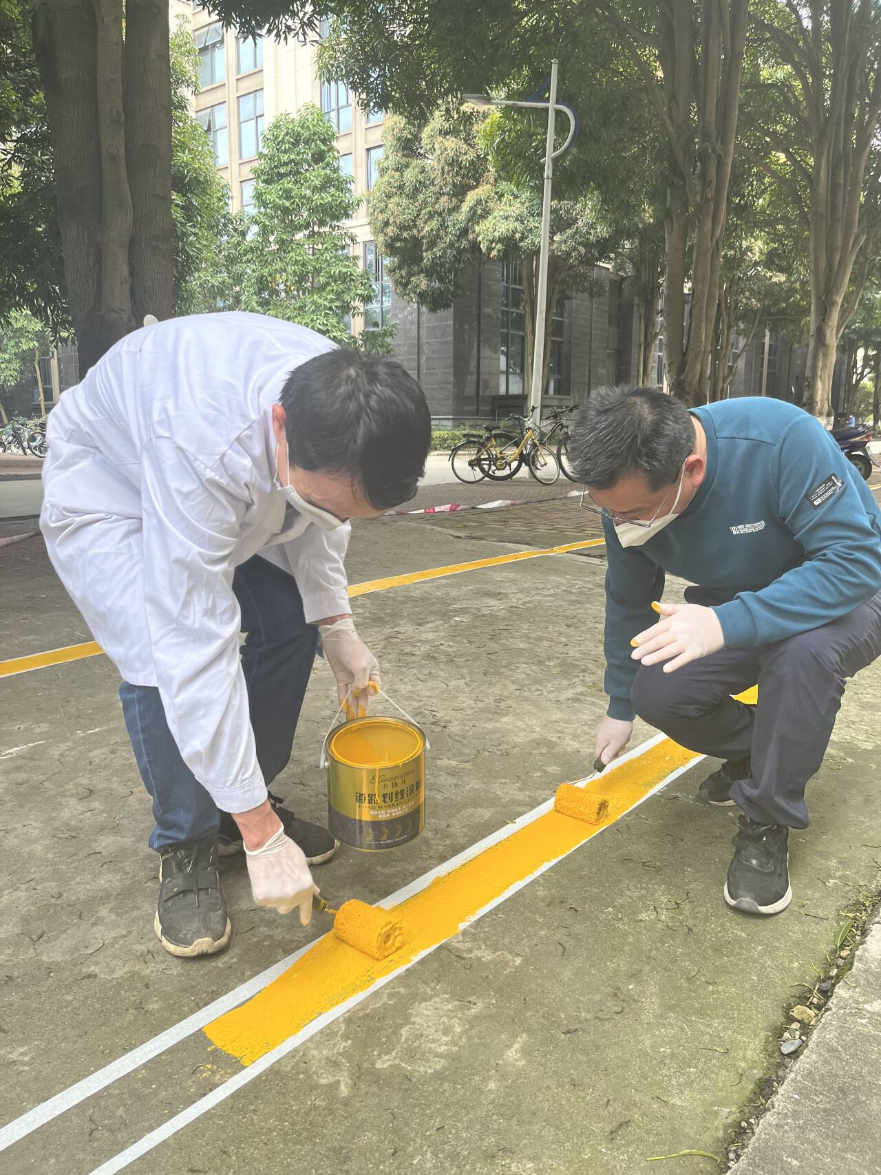 活动中,本着“应划尽划、能划则划”的原则,支部党员带着油漆、划线工具,合理利用学院办公楼边角地带新增停车位,并对停车场不清晰的线进行重新上漆,一条条停车“黄线”不仅有效利用空间,增强车辆停放容量,更是画上了一条条“文明线”,引导师生文明有序停车,营造规范整齐、合理有序的停车秩序。