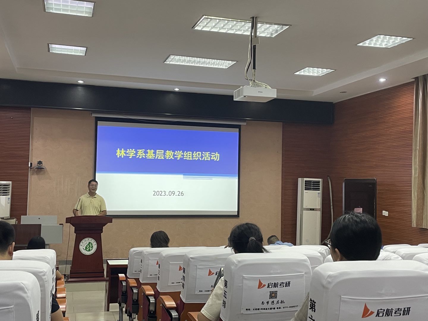 9月26日下午15点30分,我院林学系全体教工在学院112报告厅开展基层教学组织活动,活动以教学竞赛经验交流为主题,由林学系副主任程飞老师主持。