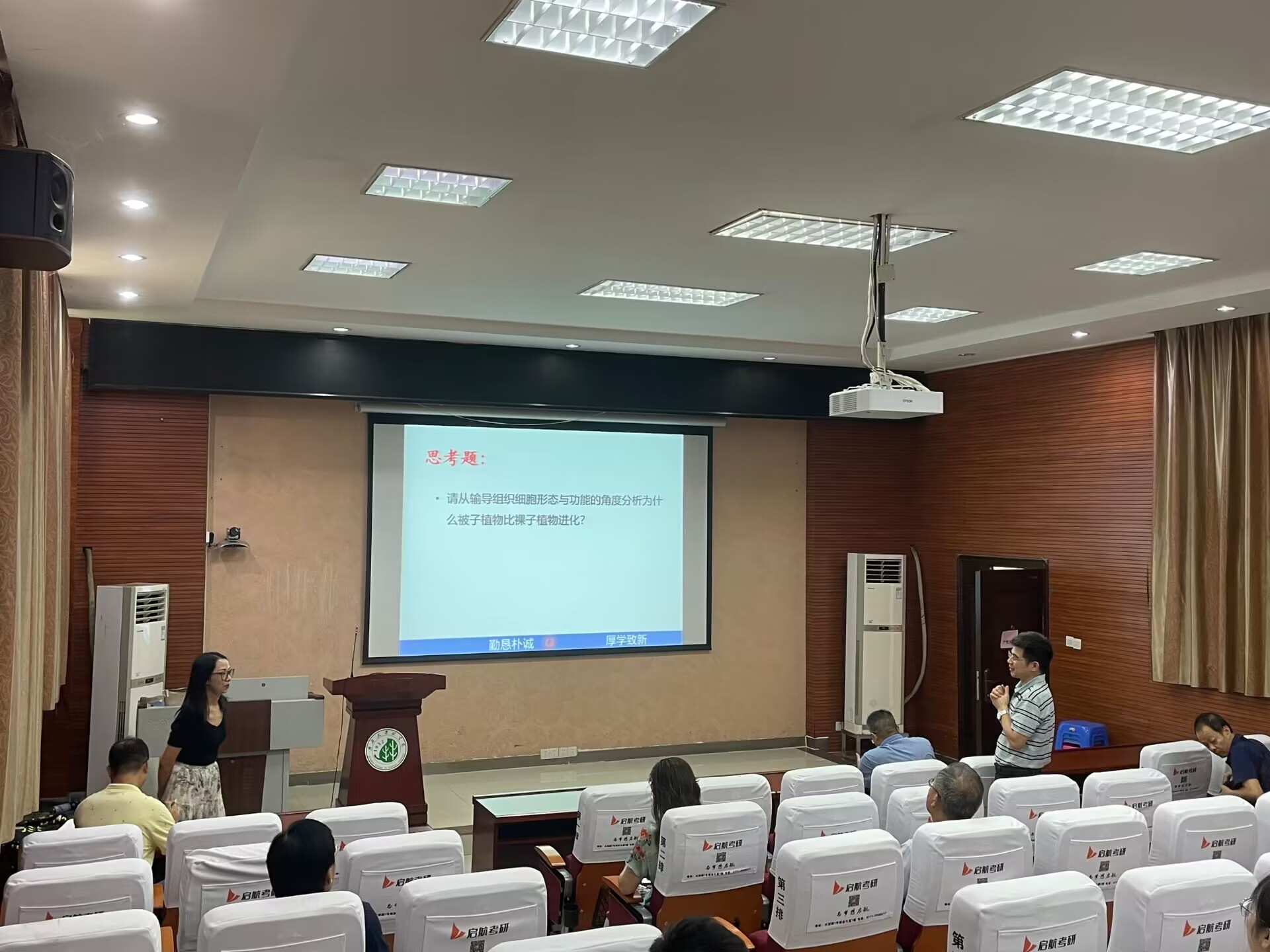 本次活动邀请了不久前在伟德betvlctor1946源于英国青年教师教学竞赛中荣获一等奖的林学系副主任蒋维昕老师做教学竞赛示范授课,示范课以《植物学》课程中植物疏导组织为讲授内容,全系教工进行了现场观摩。授课过程中,蒋维昕老师态度认真,情绪饱满,教态自然,逻辑清晰,充分展现了自己的风采。讲授完毕后,蒋维昕老师还向大家就竞赛选题、教学设计和课件制作等方面作了经验分享。