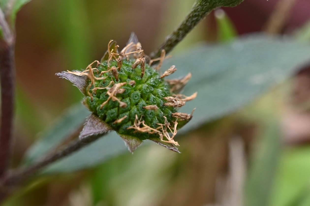最引人注目的是鳢肠的头状花序。花序单生于茎端或叶腋,直径6-8毫米,外围为雌花,中央为两性花。这种特殊的繁殖结构确保了高效的传粉和结实。果实为瘦果,暗褐色,表面具瘤状突起,这种结构有利于种子的传播和附着。