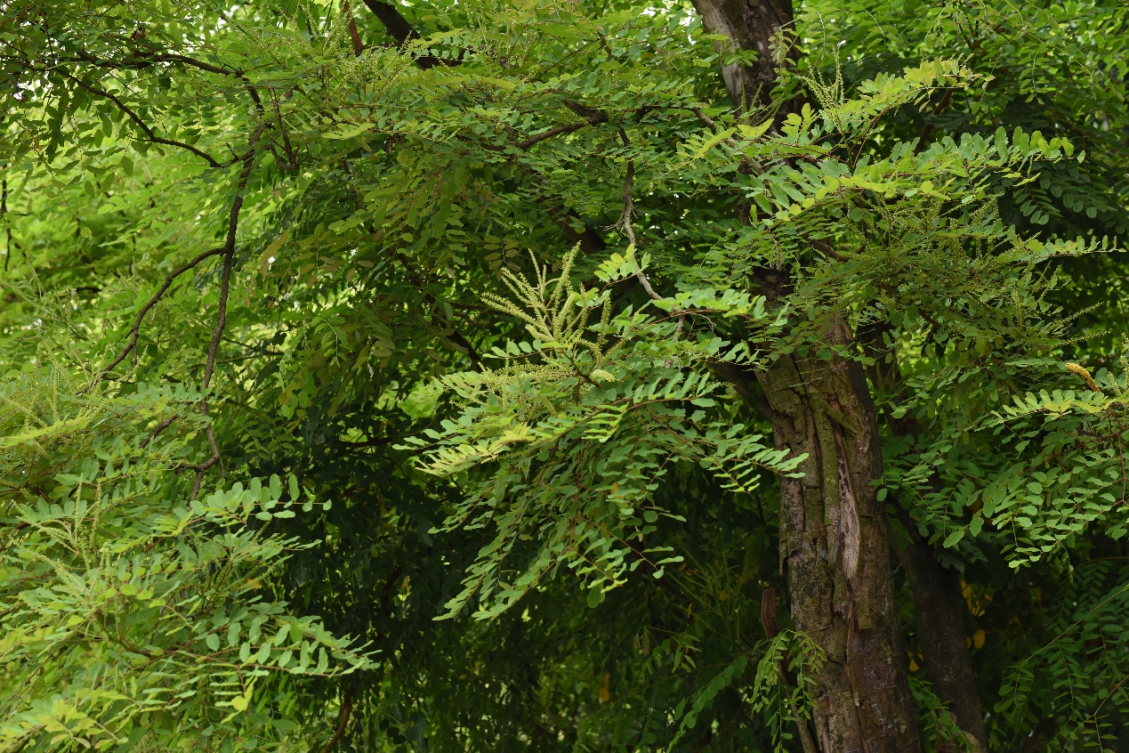 落叶乔木,高5-20m。嫩枝微被柔毛。二回羽状复叶,具短柄;叶柄和叶轴被微柔毛,无腺体;羽片3-5对,小叶4-7对,互生,长圆形或卵形,长2.5-3.5cm,宽约1.5-2.5cm,先端圆钝,两面均被微柔毛。总状花序单生于叶腋或在枝顶排成圆锥花序,被短柔毛;花小,白色或淡黄色,有香味,具短梗;花萼长不足1mm,与花梗同被金黄色柔毛;花瓣5,披针形,长2.5-3mm,无毛,基部稍合生;雄蕊10枚,与花冠等长或稍长;子房被柔毛,几无柄,花柱丝状,柱头小。荚果狭长圆形,盘旋,长10-20cm,宽1.2-1.4cm,开裂后果瓣旋卷;种子近圆形至椭圆形,长5-8mm,宽4.5-7mm,鲜红色,有光泽。花期4-7月。果期7-10月。